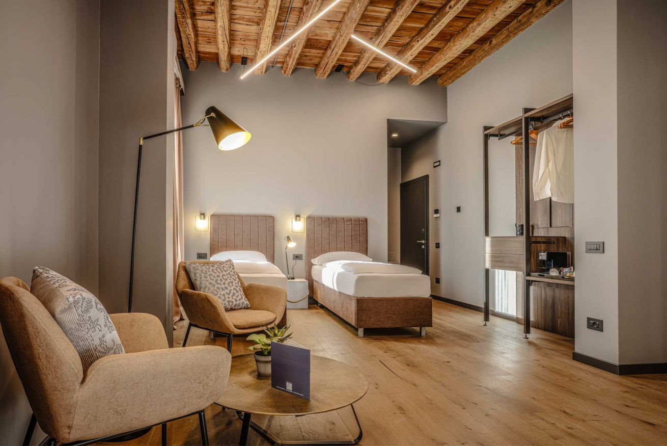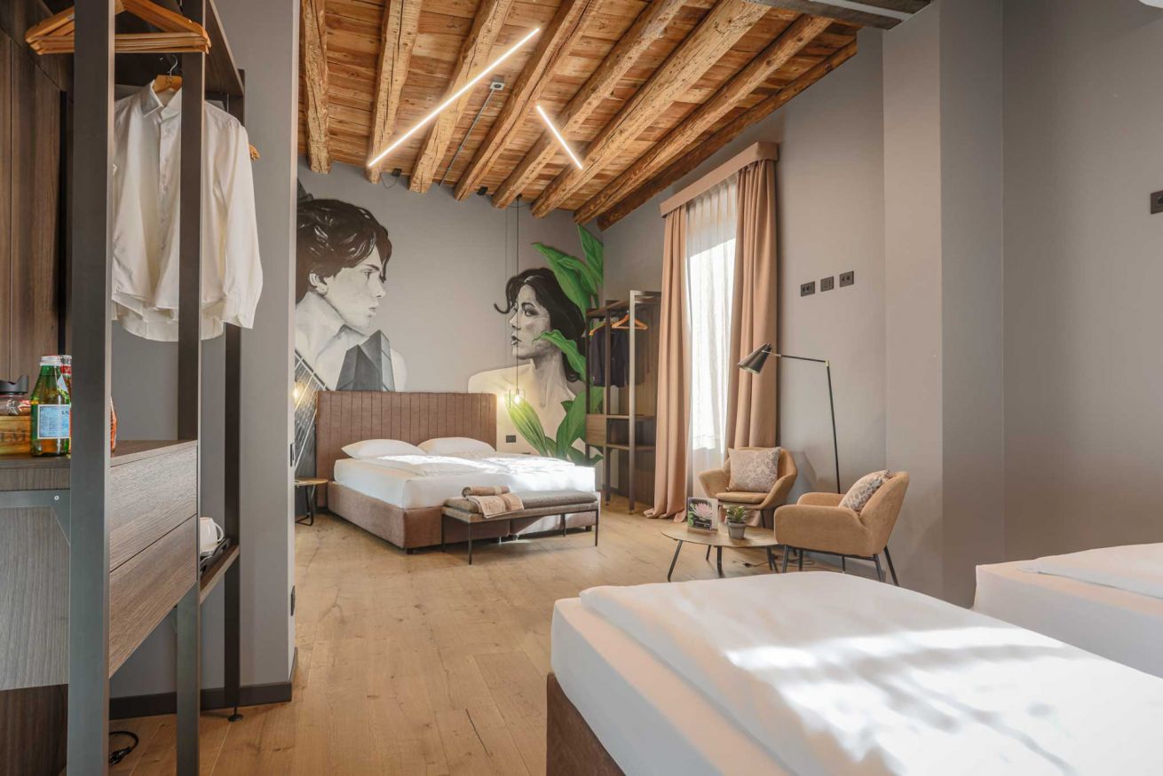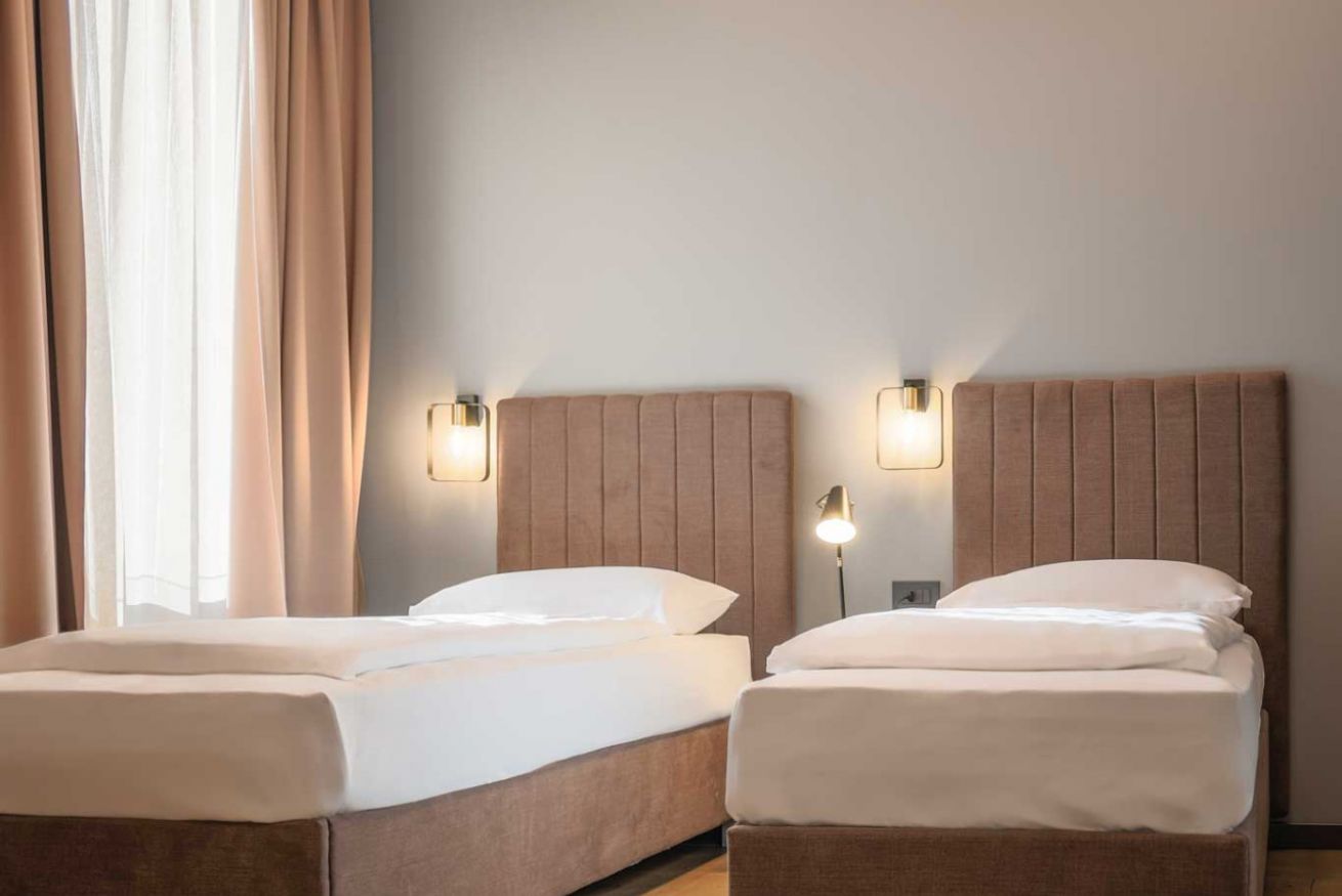 Bedroom with double bed + 2 single beds. Tourist taxes to be paid at check-in.